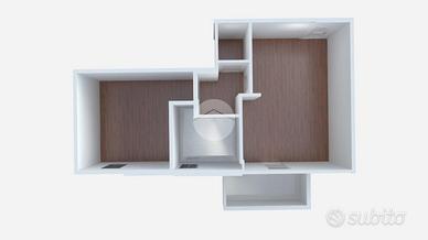 Un disimpegno ci accompagna nella zona notte, dove troviamo la camera da letto, finestrata e con il medesimo affaccio della zona living, un pratico ripostiglio, perfetto per organizzare al meglio gli spazi, ed infine il bagno finestrato, completo di box doccia.