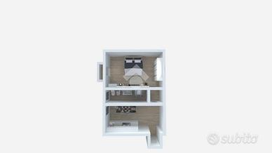 L'appartamento, dotato di porta blindata, si apre su un ingresso che conduce alla cucina, funzionale e ben organizzata. Un disimpegno separa il bagno finestrato con box doccia dalla zona notte composta da una camera da letto matrimoniale, luminosa e con accesso diretto al balcone, ideale per momenti di relax.