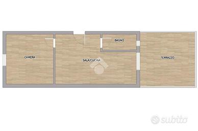 Situato al primo piano di un stabile civile l'appartamento è composto dalla sala con cucina a vista servita da un grande terrazzo, una ampia camera da letto ed un bagno finestrato. Gli spazi sono ampi, la luce garantita dalla doppia esposizione. L'appartamento è libero subito.