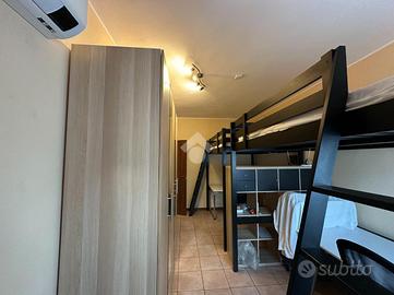 La camera da letto è di grande dimensione ed è stata arredata in maniera funzionale per due studenti, con letti sopraelevati e scrivanie sottostanti. A completare l'arredo trova posto un armadio guardaroba.