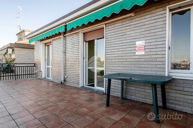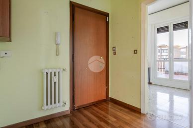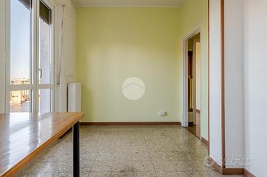 Ingresso in disimpegno, dal quale possiamo accedere ai vari ambienti della casa e dove troviamo, subito sulla sinistra, la cucina abitabile, al momento suddivisa in zona angolo cottura fornita di finestra, ed ampio spazio adibito a sala da pranzo, dotato di portafinestra che conduce sull'ampio terrazzo della casa, con affaccio libero sui tetti e sulla Via Antonio Mosca. Comunicante con il terrazzo e quindi con medesimo affaccio ed a sua volta dotato di portafinestra, troviamo il luminoso soggiorno, doppiamente esposto e con ulteriore finestra con affaccio sul lato del cortile condominiale.