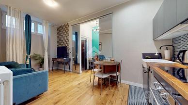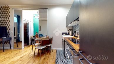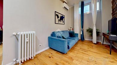 Se cerchi una casa fuori dagli schemi, questa soluzione è perfetta per te! Proponiamo in vendita un bilocale finemente ristrutturato di 65 mq, situato al piano seminterrato di una corte interna d'epoca degli anni '30. Questo appartamento colpisce per la sua disposizione particolare ma accogliente. Varcando la soglia, si viene accolti da un'ampia zona living, impreziosita da due pratici ripostigli ai lati della porta d'ingresso. La camera matrimoniale è spaziosa e ben organizzata, mentre il soggiorno si unisce all'angolo cottura, realizzato su misura con uno stile moderno ed elegante. Il bagno, progettato con attenzione ai dettagli, offre una perfetta combinazione di praticità e design. L'appartamento è caratterizzato dal parquet che percorre tutti gli ambienti, mentre l'aria condizionata assicura il massimo comfort in ogni stagione. Il riscaldamento è centralizzato, rendendo la gestione della casa ancora più semplice e funzionale. Perfetto per chi ama le soluzioni originali e lontane dagli schemi tradizionali. Situato in una posizione ottima che permette di muoversi facilmente in città. Se cerchi una casa che racconti una storia e offra un'esperienza abitativa fuori dal comune, questa potrebbe essere la scelta perfetta per te!