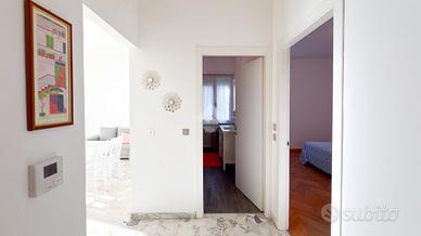 Via Tito Livio 22 - Proponiamo in vendita uno splendido e ampio bilocale situato al terzo piano di un elegante stabile anni '60 dotato di portineria mezza giornata, ascensore e curato giardino condominiale. L'appartamento si distingue per una straordinaria luminosità grazie alla doppia esposizione sud-ovest e all'ampio balcone vivibile con doppio accesso, uno spazio perfetto per rilassarsi all'aria aperta o condividere piacevoli momenti conviviali. L'ingresso si apre su un luminoso disimpegno che conduce al soggiorno con accesso diretto al balcone, un ambiente accogliente pensato per unire comfort e funzionalità. La cucina è abitabile, attrezzata e anch'essa collegata allo spazio esterno, rendendo la casa ancora più ariosa e vivibile. La zona notte è composta da un'ampia camera matrimoniale, silenziosa e ben proporzionata, mentre il bagno, finestrato e completo di box doccia, garantisce praticità e comfort. L'immobile si presenta in ottimo stato interno e offre soluzioni moderne pensate per il benessere quotidiano: serrande elettriche in soggiorno e cucina, infissi in PVC con doppio vetro per un eccellente isolamento termoacustico, aria condizionata e riscaldamento centralizzato che assicurano comfort in ogni stagione. Completa la proprietà una cantina di pertinenza. La zona è particolarmente apprezzata per l'equilibrio tra tranquillità residenziale e comodità urbana. Nelle immediate vicinanze si trovano supermercati, farmacie, ristoranti e tutti i principali servizi, oltre a numerosi collegamenti con i mezzi pubblici, tra cui il tram 16 e le linee autobus 90, 91, 92, 93 e 84. La presenza di parchi e spazi verdi rende il quartiere ancora più piacevole, ideale per chi ama trascorrere tempo all'aria aperta. Contattaci per fissare un appuntamento: sarà un piacere accompagnarti a scoprirla di persona.