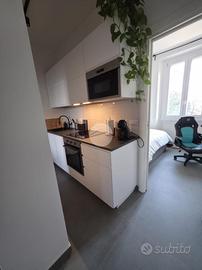 Propiniamo in affitto un bilocale di 46 mq, COMPLETAMENTE RISTRUTTURATO, al secondo,composto da ingresso, zona giorno che dona luminosità all'ambiente, cucina separata non abitale, bagno finestrato con box doccia luminosa camera matrimoniale.