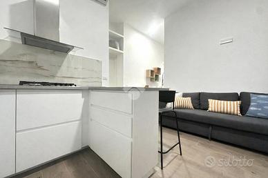 In Via Cipro, all'interno di un elegante stabile degli anni '40, proponiamo in locazione un raffinato bilocale di 52 mq, completamente ristrutturato e arredato con gusto, pronto da abitare.
