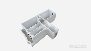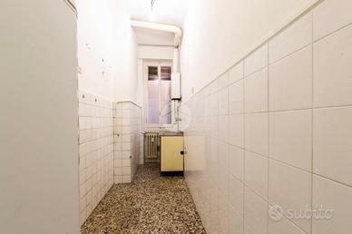 Ingresso in corridoio, dal quale possiamo accedere ai vari ambienti della casa e dove troviamo, subito sulla sinistra, la cucina abitabile, fornita di finestra con affaccio tranquillo sul balcone. Proseguendo, a seguire, con medesima esposizione ed affaccio, troviamo il bagno anch'esso finestrato e il soggiorno luminoso e dotato di portafinestra che conduce sul balcone che affaccia sul cortile condominiale. Proseguendo poi dal disimpegno, troviamo infine la camera da letto matrimoniale, con opposta esposizione ed affaccio rispetto alla zona giorno.