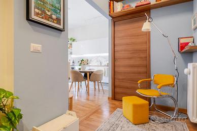 L'appartamento risulta essere così composto: ingresso in disimpegno che permette l'accesso ai vari ambienti della casa, garantendo una chiara separazione degli spazi.