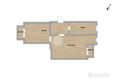 L'appartamento si presenta in BUONE CONDIZIONI, con pavimentazione in parquet vero nella camera da letto, nella zona living un caratteristico pavimento in palladiana di marmo, ed infine in bagno delle piastrelle ceramica. Inoltre infissi in DOPPIO VETRO PVC, SPLIT D'ARIA CONDIZIONATA.