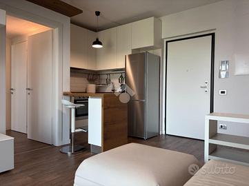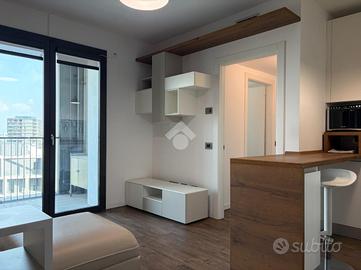 Cascina Merlata: nel cuore di uno dei quartieri più innovativi e in forte espansione di Milano, nato dalla straordinaria riqualificazione dell'area Expo 2015, proponiamo una soluzione inserita in un contesto urbano moderno, dinamico e ricco di servizi. L'area rappresenta oggi uno dei poli più promettenti della città, grazie alla presenza di ampi spazi verdi, piste ciclabili e infrastrutture di nuova generazione. La recente apertura del Merlata Bloom, punto di riferimento per shopping, ristorazione e intrattenimento, l'imminente realizzazione di un moderno plesso scolastico e il futuro collegamento diretto con l'area MIND/Expo rendono questo distretto destinato a seguire le orme di CityLife e Porta Nuova. L'appartamento è inserito in uno stabile di recente costruzione, elegante e curato nelle parti comuni, dotato di giardino condominiale, servizio di portineria diurno e doppi ascensori di ultima generazione che collegano comodamente anche i piani interrati. L'immobile, locato completamente arredato, si distingue per un taglio funzionale e moderno: l'ingresso si apre su una luminosa zona living con cucina perfettamente integrata, pensata per coniugare design e praticità. L'ambiente è valorizzato da un'ampia portafinestra che conduce al terrazzo loggiato, uno spazio esterno vivibile in ogni stagione, ideale per momenti di relax o convivialità, impreziosito da una suggestiva vista aperta sullo skyline milanese, capace di regalare scorci unici soprattutto al tramonto. Il piano alto garantisce un'eccellente luminosità e un ottimale ricircolo d'aria in tutti gli ambienti, contribuendo a rendere l'abitazione ancora più confortevole e ariosa. La zona notte, ben disimpegnata, ospita una spaziosa camera matrimoniale arricchita da una raffinata cabina armadio, perfettamente organizzata per ottimizzare gli spazi e garantire il massimo comfort. Completano l'ambiente un bagno finestrato con elegante box doccia in cristallo e un pratico vano ripostiglio attrezzato, soluzione ind..