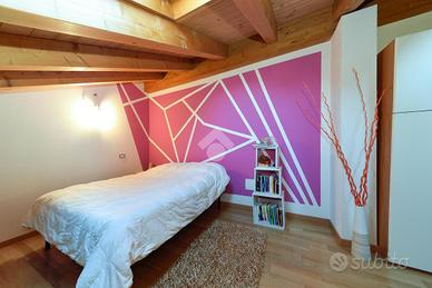 Salendo al piano superiore si ha accesso alla camera caratterizzata da travi a vista. Termina il piano un secondo bagno anch'esso avente travi a vista.