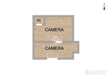 Trattasi di comodo bilocale di circa 43 mq. composto da due camere di cui una dotata di accesso al soppalco e bagno.