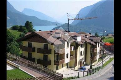 Molveno, Via Belvedere Luminoso primo piano con ampia zona giorno, cucinotto, stanza matrimoniale, bagno e tre balconi ottimamente esposti. Completano la proprietà un box auto e una cantina. Posizione dominante, a due passi dalla fermata del bus navetta. Esposizione SUD-EST/OVEST.