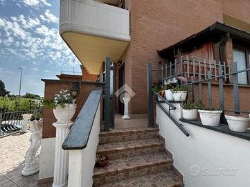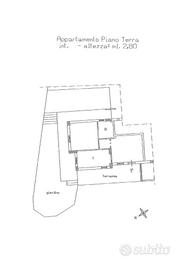 L'accesso alla proprietà avviene tramite un giardino terrazzato di circa 70mq che conduce all'ingresso dell'appartamento.