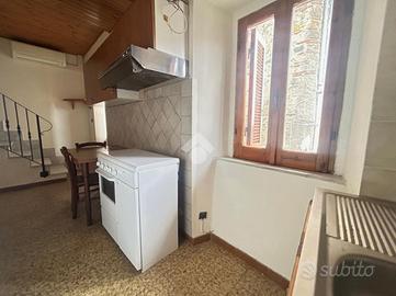 L'immobile si sviluppa su due livelli ed è composto al primo livello da soggiorno con angolo cottura e bagno, mentre al piano superiore troviamo una camera matrimoniale con uscita su balcone.