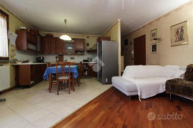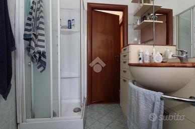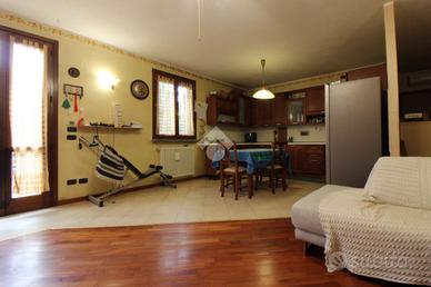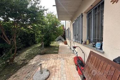 Comodo appartamento al piano terra con ingresso indipendente e giardino privato di 115 mq. con irrigazione automatica. L'immobile di 70 mq. è composto da soggiorno con parquet e cucina a vista. Disimpegno, camera matrimoniale e bagno con la doccia. Ripostiglio con accesso diretto alle cantine e al box. La soluzione è completa di zanzariere, aria condizionata ed inferriate.