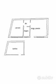 In piccolo contesto di due famiglie proponiamo comodo appartamento al piano terra e grande cantina di 20 mq al piano interrato. L'immobile è composto da soggiorno con angolo cottura, disimpegno e camera. Bagno con piatto doccia. Libero subito