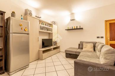 L'appartamento vede un soggiorno con angolo cottura, un bagno e una comoda camera matrimonaile; il disimpegno tra l'appartamento e il garage è stato adibito a lavanderia.