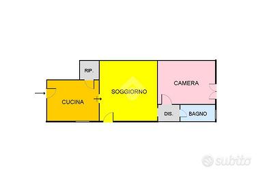 - Soggiorno, cucina con camino, camera da letto matrimoniale, disimpegno, ripostiglio e bagno finestrato con doccia.