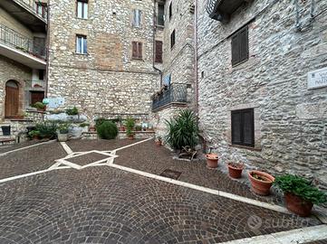 DESCRIZIONE: Situato all'interno del meraviglioso borgo medievale, con ingresso dalla caratteristica Piazzetta, l'immobile, facente parte di uno stabile rivestito in pietra, si presenta in buono stato. Infissi in legno con doppio vetro e persiane, pavimento in granigliato e gress, riscaldamento termo-autonomo a metano. L'appartamento, adatto come casa vacanze, gode di ottima esposizione e di vista panoramica!