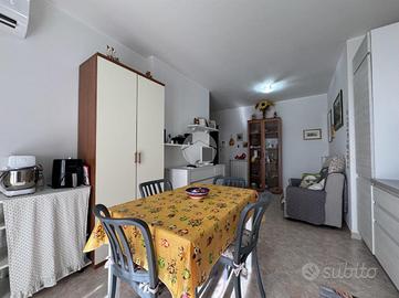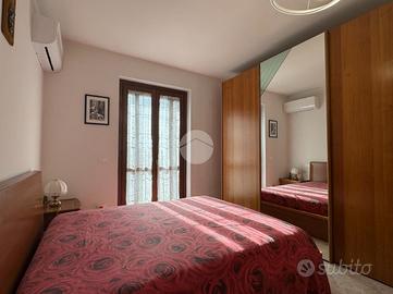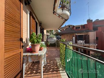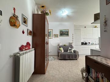 Nel cuore del centro cittadino di Monterotondo, più precisamente in Via Volturno, a pochi passi da tutti i principali servizi, proponiamo in vendita un ampio bilocale di 55 mq, situato al piano rialzato di una palazzina del 2006 in cortina in buono stato, servita da ascensore. L'ingresso conduce a un luminoso soggiorno con cucina a vista, dal quale, tramite una porta finestra, si accede a un ampio terrazzo che gode di una vista panoramica mozzafiato, accessoriato di un pratico locale tecnico. Un disimpegno separa la zona giorno dalla zona notte, composta da una camera matrimoniale con accesso diretto al terrazzo, una stanza polifunzionale ideale come studio o cabina armadio e un servizio finestrato completo di box doccia. A completare la soluzione un comodo box auto di 15 mq. L'immobile è in ottimo stato ed è dotato di numerosi comfort: infissi in doppio vetro, porta blindata, zanzariere, grate, tende da sole e due condizionatori.