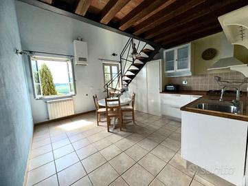 In un contesto tranquillo e immerso nel verde, a pochi minuti dal centro di Montespertoli, vendesi grazioso bilocale ristrutturato nel 2010 situato al primo piano di una palazzina. L'immobile è composto da un soggiorno con angolo cottura openspace, molto luminoso e ben distribuito. Il bagno è dotato di box doccia e ventola. Attraverso una scala in legno, si accede al soppalco reso possibile dai soffitti alti, dove è stata ricavata una comoda camera matrimoniale con parquet, travi a vista e due grandi lucernari che inondano luce naturale l'ambiente. L'immobile si distingue per l'atmosfera calda e accogliente, grazie ai travi a vista e alla grande luminosità garantita da due ampie finestre nella zona giorno, affacciate direttamente sulla campagna. La posizione è ideale per chi desidera la tranquillità della campagna senza rinunciare alla comodità dei servizi, raggiungibili in 7 minuti di auto. Sono presenti circa 400€ di spese condominiali annue, le utenze sono autonome e il riscaldamento è alimentato da GPL. L'immobile si presenta in ottime condizioni. DEVI VENDERE LA TUA CASA??? CONTATTACI PER UNA VALUTAZIONE GRATUITA E SENZA IMPEGNO!!! PER MAGGIORI INFORMAZIONI POTETE INVIARE LA RICHIESTA VIA MAIL O CHIAMARE DIRETTAMENTE I SEGUENTI NUMERI - (anche WhatsApp)