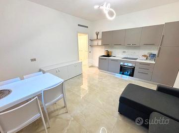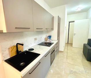 La zona giorno è composta da un luminoso soggiorno, perfetto per momenti di relax o per ricevere ospiti, con cucina a vista, progettata per ottimizzare gli spazi e garantire praticità. La zona notte include una camera da letto spaziosa, che assicura tranquillità e riposo, mentre il bagno, ben rifinito, completa l'offerta abitativa.