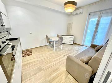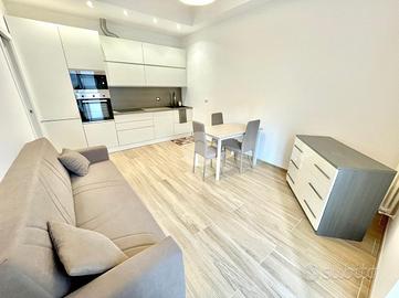 L'appartamento è composto da un luminoso soggiorno con zona pranzo e cucina a vista che si affaccia su un balcone privato, ideale per momenti di relax all'aperto. La zona notte è caratterizzata da una spaziosa camera matrimoniale e da un bagno finestrato con box doccia e attacchi per la lavatrice.