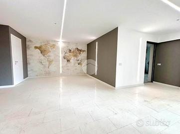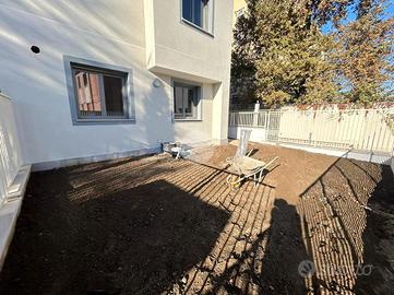 Entrando nella soluzione si ha l'ingresso all'ampia e raffinata zona giorno con cucina a vista e accesso diretto al patio che porta al giardino privato tramite una grande vetrata scorrevole che permette alla luce naturale di illuminare l'appartamento. La zona notte è composta da una camera matrimoniale e conclude un servizio di pregio.