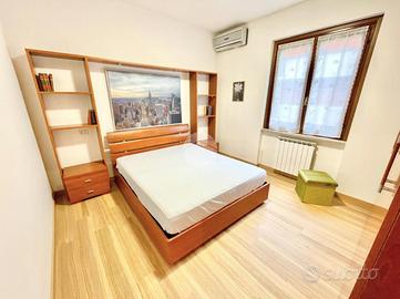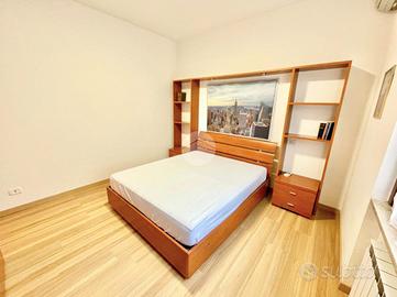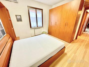 L'appartamento è composto da un ampio e luminoso soggiorno, ideale per momenti di relax e convivialità. La cucina, separata con porta a soffietto e abitabile, è parzialmente rinnovata e offre tutti gli elettrodomestici nuovi. La zona notte è caratterizzata da una spaziosa camera matrimoniale con ampia armadiatura, letto contenitore e split dell'aria condizionata che garantisce un clima ideale in ogni stagione. Il bagno finestrato con porta scorrevole e vasca è funzionale e comprende una lavatrice.