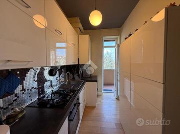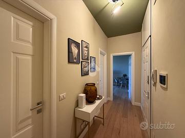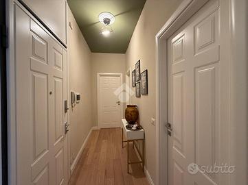 MONZA - ZONA LIBERTA' In una palazzina signorile proponiamo bilocale di oltre 70mq situato al quinto piano e servito da ascensore e portineria, completamente arredata e finemente ristrutturata nel 2018. L'appartamento si suddivide in ingresso, luminoso soggiorno e cucina con decorazione in mosaico bisazza. La zona notte è composta dalla camera matrimoniale e bagno con box doccia in cristallo. Tutte le stanze hanno porte a finestra con accesso diretto al balcone. L'abitazione vanta di raffinate finiture tra cui pavimentazione in parquet essenza rovere, il bagno rifinito in gres porcellanato, infissi bianchi in pvc doppio vetro a taglio termico e infine porte interne bianche pantografate con maniglie cromo satinate. Completano la proprietà una cantina al piano seminterrato. ------------------------------------------- La presente descrizione e le immagini riportate hanno valore puramente indicativo e non costituiscono elemento contrattuale.
