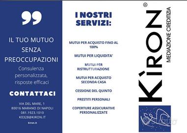 Grazie alla collaborazione con i consulenti KIRON, hai la possibilità di accedere a consulenze mutuo gratuite e senza impegno, per trovare la formula di finanziamento più adatta alle tue esigenze.