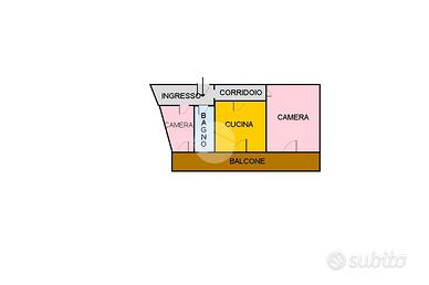 La casa è composta da cucina abitabile con balcone, camera da letto, cameretta e servizio con finestra.