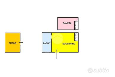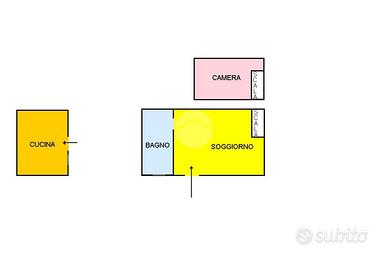 E' composto da: Ingresso, soggiorno, camera la letto soppalcato, bagno e vano lavanderia. La cucina abitabile attualmente si presenta distaccata, poco distante dal cespite.