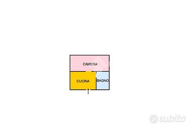 Il monolocale, situato su un piano ammezzato interno del palazzo, è composto da ingresso in cucina, camera da letto, bagno con finestra con affaccio interno al cortile