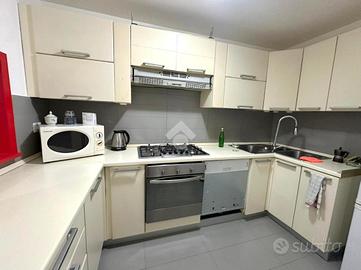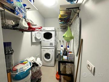 La soluzione offre un ambiente elegante composta da un ampio soggiorno, una cucina ben attrezzata, una camera da letto con una piccola cabina armadio, due bagni e una lavanderia.