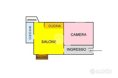 L' immobile è cosi composto: ingresso, camera, salone cucina con balcone con affaccio interno al cortile del fabbricato, bagno e veranda.