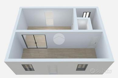L'ingresso conduce direttamente in un soggiorno funzionale, organizzato in modo da offrire uno spazio conviviale e accogliente. A seguire si trova un angolo cottura pratico, ben integrato nella zona living e ideale per ottimizzare gli spazi senza rinunciare alla comodità.