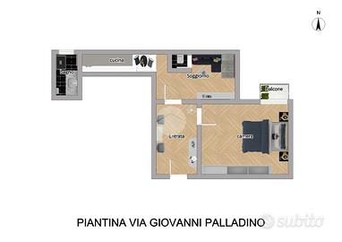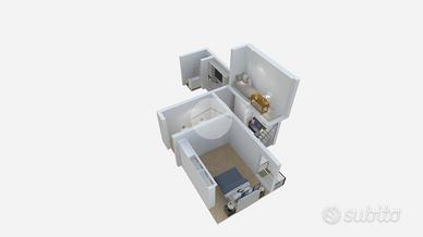 L'immobile si sviluppa su una superficie di 50 mq, composto da:ingresso, camera da letto con balcone che affaccia all'interno del cortile del palazzo, soggiorno, cucina, studio e due bagni. La soluzione è ottima per chi necessita di un'abitazione confortevole, già pronta e posizionata in un punto strategico della città.