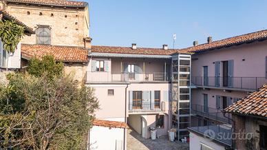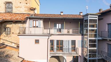 In centro paese proponiamo in vendita un appartamento al primo piano di uno stabile composto da poche unità abitative e in fase di ristrutturazione. L'ascensore conduce direttamente alla porta di ingresso che da accesso sul soggiorno con angolo cottura. Il disimpegno conduce al bagno dotato di box doccia, e alla camera matrimoniale. L'immobile è dotato di balcone privato che si collega al grande terrazzo sempre di proprietà. Il riscaldamento è a pavimento con pompe di calore. Le spese condominiali non sono state ancora conteggiate. Attualmente vi è la possibilità di acquistare una o due autorimesse singole ancora disponibili e la cantina. Vengono valutate formule di riservato dominio.