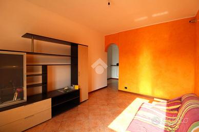 VIA OBERDAN 12-14 Quartiere tranquillo e verdeggiante adiacente al centro paese ed a tutti i servizi di prima necessità come scuole, mezzi pubblici, farmacie, negozi e tanto altro ancora. Poco distante troviamo la SS33 del Sempione, comoda per gli innesti di tangenziali ed autostrade. In palazzina di 4 piani, con ascensore esterno in vetro, ampio appartamento di 2 locali all'ULTIMO PIANO. L'immobile si presente LUMINOSO grazie alla doppia esposizione Sud - Ovest. RISCALDAMENTO AUTONOMO e BASSE SPESE CONDOMINIALI. Il disimpegno all'ingresso divide la zona giorno composta da una cucina abitabile e da un salotto con porta-finestra che si apre sul balcone di pertinenza. Un ulteriore disimpegno con controsoffitto illuminato da faretti, conduce alla zona notte composta da un'ampia camera matrimoniale, ariosa grazie alla presenza di due porte-finestre, una dotata di parapetto e l'altra con affaccio sul balconcino di pertinenza; e ad un bagno finestrato completo di doccia e vasca. L'appartamento è stato rinnovato circa 15 anni fa; presenta infissi in doppio vetro e Pvc, tapparelle elettriche, e sanitari sospesi. Completa la soluzione la presenza della cantina. Libero subito.