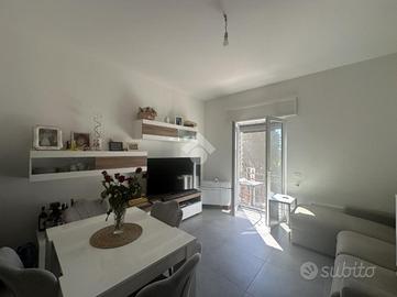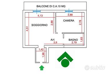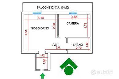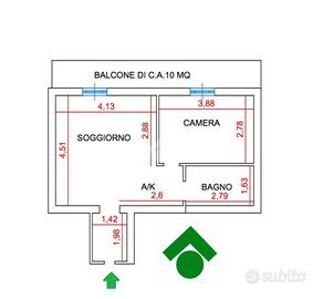 L'ingresso si apre su un luminoso soggiorno con angolo cottura, ambiente accogliente e funzionale, perfetto per momenti di relax e convivialità. Dal soggiorno si accede tramite una porta-finestra al balcone di circa 10 mq, comunicante con la camera da letto matrimoniale di c.a. 11 mq, proseguendo troviamo un bagno servito da doccia e doppio lavabo. L'immobile è attualmente servito da termoconvettori per il riscaldamento e scaldabagno per la produzione di acqua calda sanitaria. È predisposto per l'allaccio al gas metano.