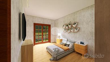 La camera da letto matrimoniale, affaccia sul balcone. Completano la proprietà il bagno finestrato e la cantina al piano interrato.