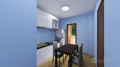 L'ingresso avviene sulla zona giorno con angolo cottura.