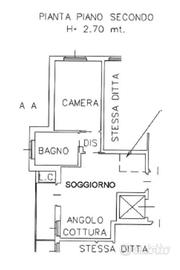 In zona residenziale e comoda ai servizi, appartamento ARREDATO al Piano Secondo ed ultimo, servito da ascensore e privo di barriere architettoniche. L'ingresso è living sulla zona pranzo, disimpegno, soggiorno, bagno con doccia e balcone. Collegato internamente, il piano secondo si compone di camera da letto con cabina armadio, studio e bagno con doccia. Il riscaldamento è autonomo a metano ed è regolato dalla nuova caldaia a condensazione e le spese condominiali sono di € 66,00 mensili. Completo di cantina e box auto. La proprietà richiede contratti di lavoro a tempo indeterminato e non sono ammessi animali.