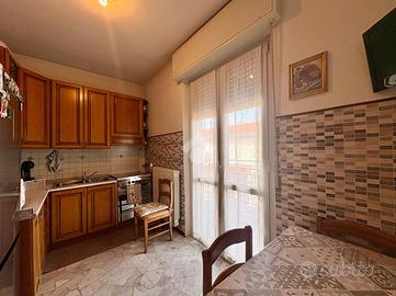 Proponiamo in vendita un accogliente appartamento di due locali situato al terzo ed ultimo piano di una palazzina priva di ascensore. L'ingresso si apre su un corridoio che distribuisce in modo funzionale tutti gli ambienti della casa, creando una piacevole continuità tra gli spazi. Sulla destra si trova il soggiorno, un ambiente luminoso grazie alla presenza di una finestra che permette alla luce naturale di valorizzare lo spazio. Proseguendo si accede alla cucina abitabile, comoda e ben organizzata, arricchita da un balcone che dona ulteriore luminosità e offre uno sfogo esterno. Sul lato opposto del corridoio si sviluppa la zona notte, composta da una camera da letto ampia e luminosa. Al termine del corridoio troviamo il bagno, completo di vasca e valorizzato dalla presenza di una finestra. L'appartamento è dotato di riscaldamento centralizzato con termovalvole, soluzione che consente una gestione più efficiente dei consumi e una regolazione autonoma della temperatura nei diversi ambienti. Gli infissi, realizzati in PVC con doppio vetro, assicurano un buon isolamento termico e acustico, migliorando il comfort abitativo e contribuendo al risparmio energetico. L'appartamento gode di una tripla esposizione verso Ovest, Est e Nord, caratteristica che assicura una buona illuminazione naturale durante tutta la giornata. Completa la proprietà una cantina.