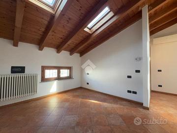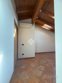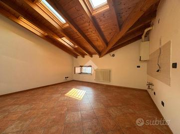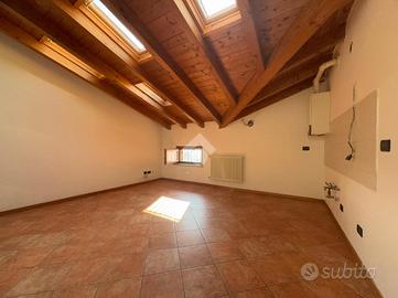 OFFANENGO: proponiamo in vendita appartamento bilocale posto al terzo ed ultimo piano di una palazzina ben abitata realizzata nel 2007. L'appartamento presenta soffitto con travi a vista, con ambienti molto luminosi per la presenza di velux nel tetto. Zona giorno open space con parete cottura, camera da letto matrimoniale e bagno con doccia. Infissi in legno con doppi vetri (in bagno apertura anche vasistas), porta blindata, videocitofono, climatizzatore, antibagno con attacchi per la lavatrice. Con cantina di circa 10 mq al piano terra e posto auto privato. Spese condominiali minime, meno di 150 € all'anno.