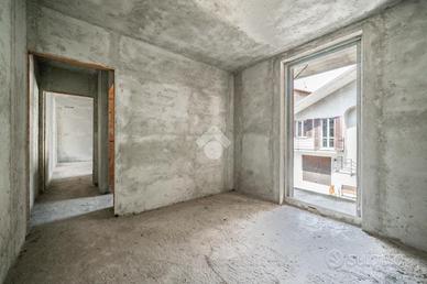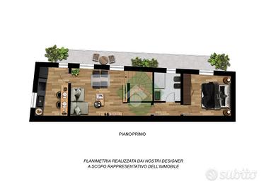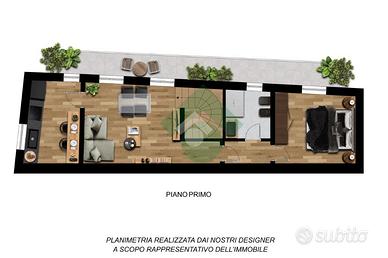 Sviluppata su un unico livello e predisposta per avere: cucina abitabile, soggiorno, bagno camera e balcone. Direttamente collgata con il piano terra con piccolo box e lavanderia. All'interno della corte, area esclusiva per 2 posti auto.
