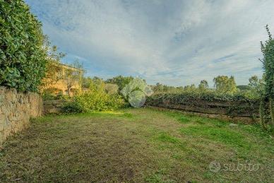 Un curato vialetto con aree verdi e basolato tipico sardo, ci accompagna all'appartamento oggetto di vendita.