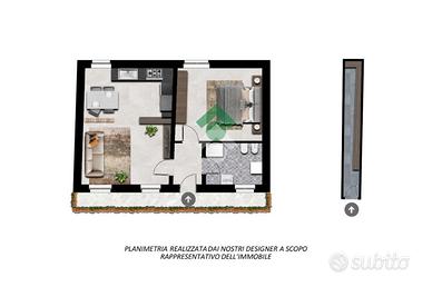 All'interno la zona giorno è stata suddivisa tra cucina e soggiorno con degli arredi a giorni, utili. La camera è ampia e ben arredabile. Il bagno, con doccia, si presenta in perfette condizioni.