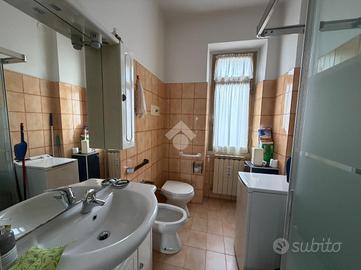 Attraverso un ampio disimpegno si accede al grande bagno finestrato con doccia da poco ritrutturata ed alla spaziosa camera matrimoniale.